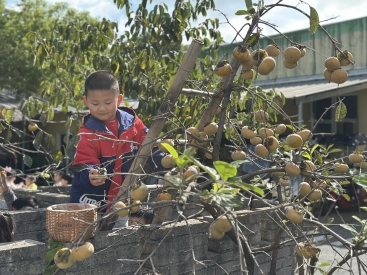 标题:秋日柿红丰收乐 童趣采摘意正浓
