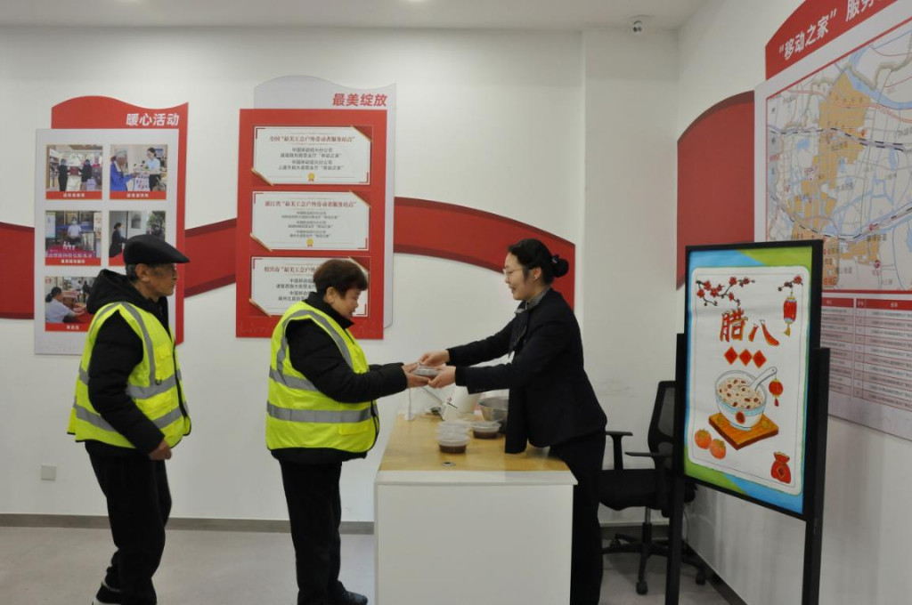 腊八节期间,越城移动营业厅开展“暖心慰问”活动,聚焦户外劳动者群体。活动现场,工作人员为环卫工人、快递员、外卖骑手等送上热腾腾的腊八粥,搭配实用护膝带抵御寒冬劳作,并赠送新春对联传递节日祝福。