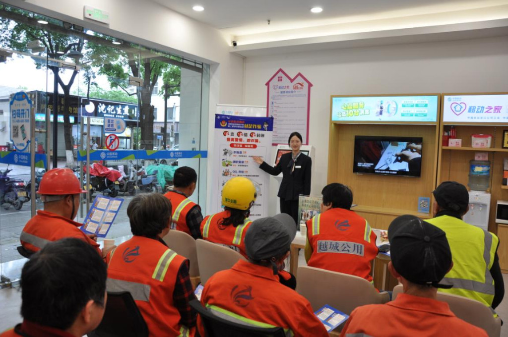 近日,绍兴越城移动公司在户外劳动者驿站,开展反诈宣传专题讲座。活动聚焦环卫工人、外卖骑手、快递员等群体,结合高发诈骗案例,重点讲解虚假刷单、冒充客服、钓鱼链接、虚假招工等常见骗局,提醒大家不轻易透露验证码、不随意转账。